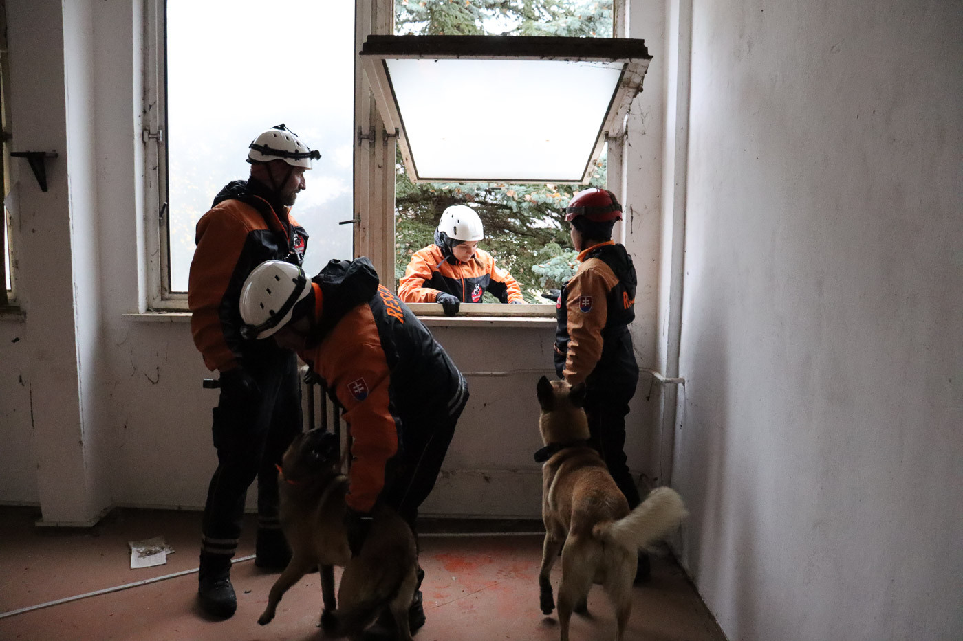 Druhá časť cvičenia sa odohrávala v opustených vojenských kasárňach v Jelšave, kde sme si preverili popri rôznych simulovaných scenároch pátrania taktiku, komunikáciu a kooperáciu so všetkými zúčastnenými. Všetky úlohy boli realizované v náročných podmienkach za nepriaznivého počasia a nočného prostredia.